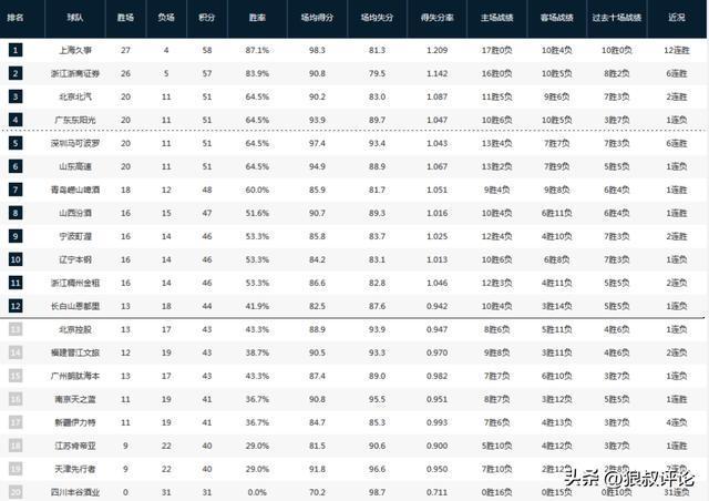 CBA最新排名:北京绝杀广东赢下卡位战 深圳战绩狂飙 2队锁定季后赛