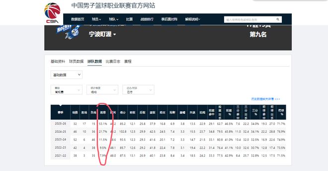 胜负场数与传统强队辽篮持平,同时仅落后第八浙江男篮一个胜场,落后第七青岛两个胜场。以目前的胜率来看,宁波男篮只要在后面赛程稳定发挥,则能顺利直通季后赛。